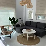 Tento apartmán o rozloze 75 m^2 se nachází 20 km od letiště Karpathos. Z terasy se hosté mohou dívat na zahradu.